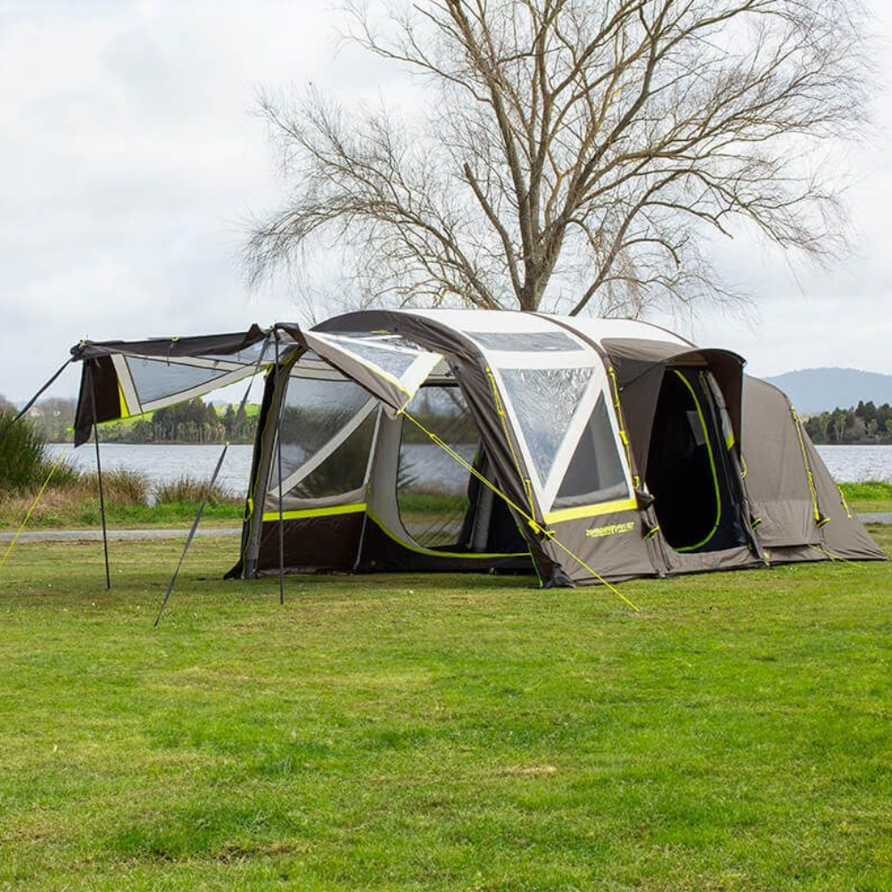 Enclose the awning space of your Pro TM V2 tent with an Awning Wall Set. A 2-panel design lets you adapt to the conditions with both a fully waterproof poly wall and bug-proof mesh wall included. You can also use both walls together when you set up the waterproof wall as a gullwing awning (poles included). Tinted panorama PVC windows on the poly wall let light in while sealing the elements out.