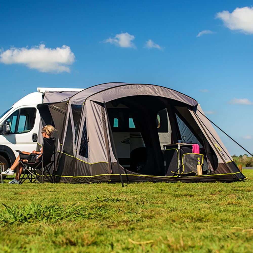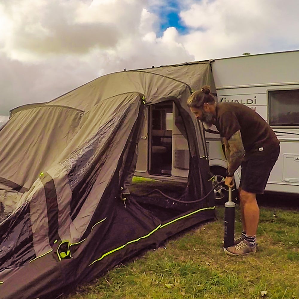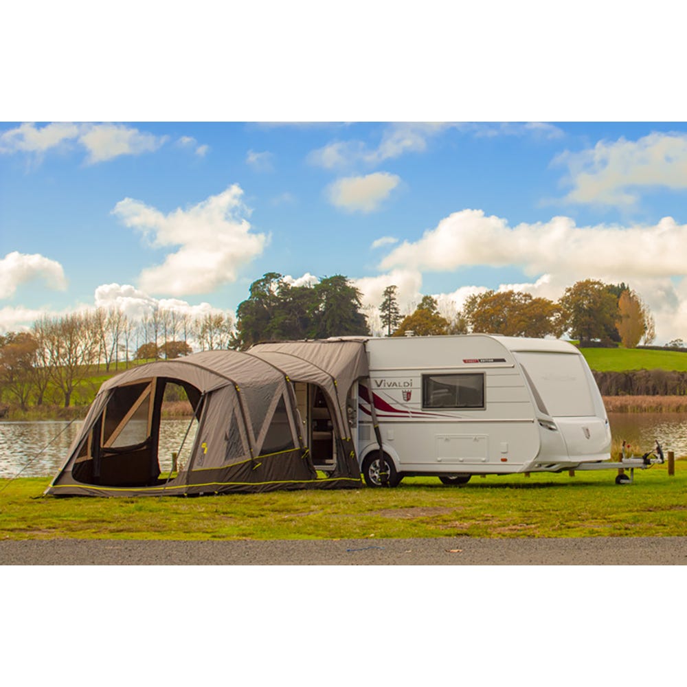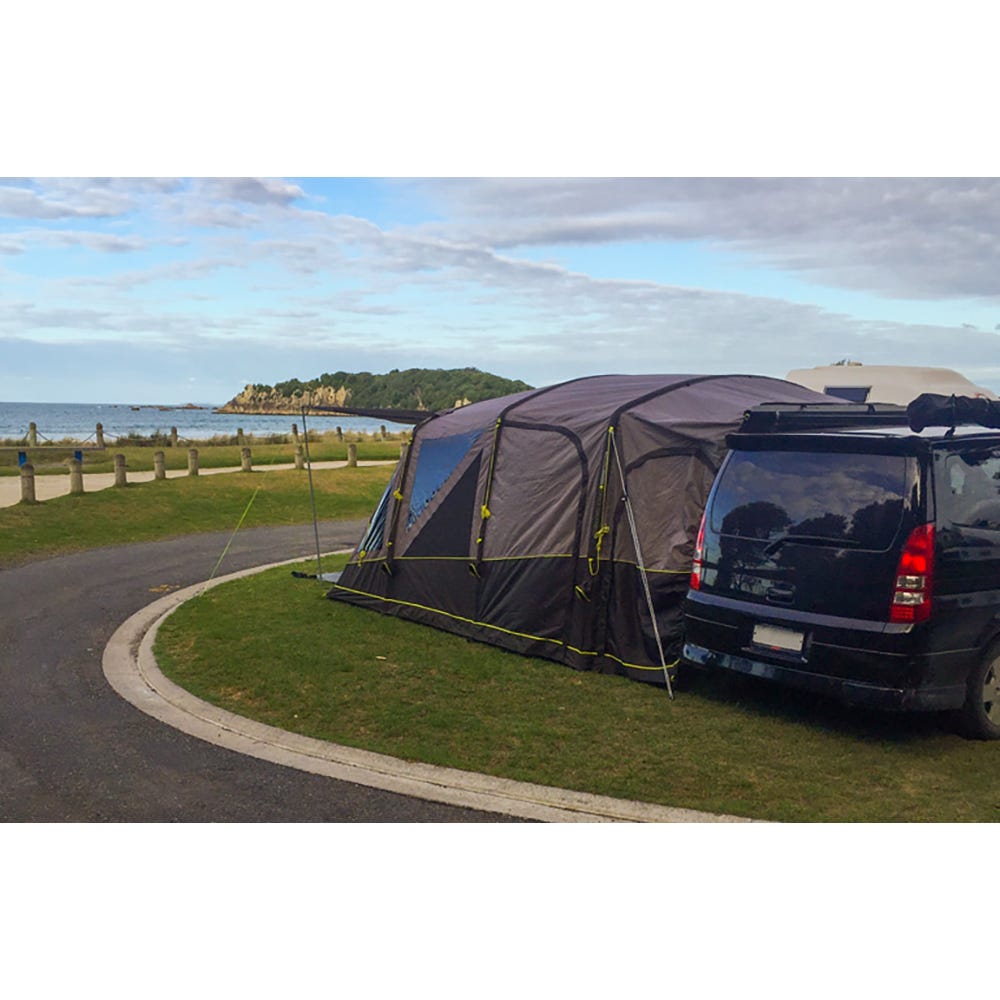 The fully inflatable drive-away awning for Motor Homes, Caravans, Vans and Utes. Makes Vehicle camping more practical by removing the need to pack up when you use your vehicle, simply zip off the main gusset and drive away. Your Roadie 6 remains completely freestanding giving you ownership and security of your site whilst away plus a completely sealed living area and optional bedroom within. Made from Zempire's strongest and most waterproof fabric (UN Spec 210D Ripstop with 10,000mm Waterhead Rating).