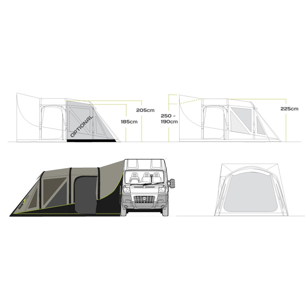 Doors on either side of the awning provide good access. The left hand side door features a protective canopy providing a wet entry into the shelter. The large rear canopy can be attached to a wide variety of vehicle heights and provides an essential wet/dry transition zone between vehicle and tent inner.
