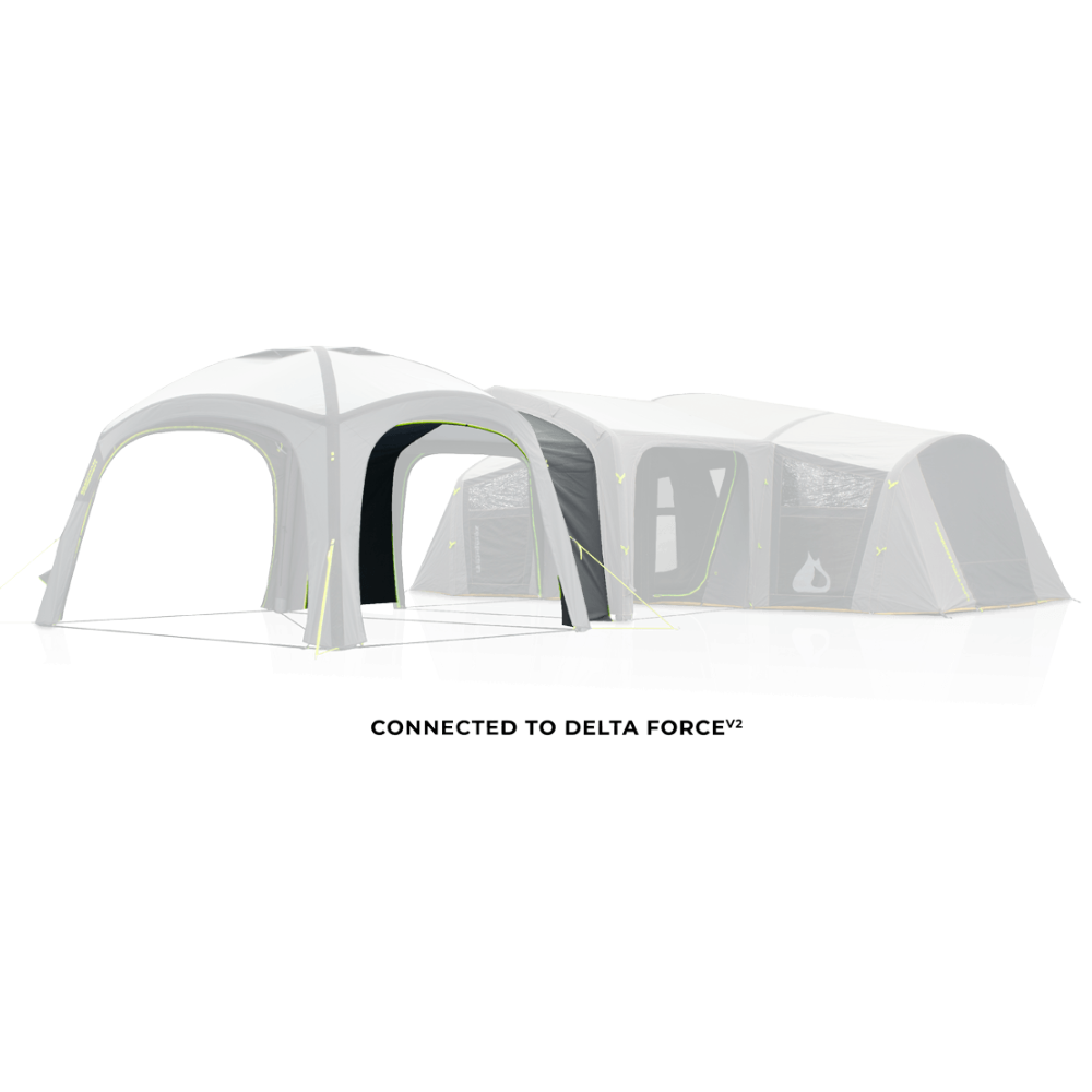 Upgrades your Delta Force V2 or Fortress V2 setup by connecting the Roadiebase Air Shelter to the front awning, creating a large protected space. Made from our strongest canvas materials, the link simply zips onto the front of the fully inflatable awning to provide a protected connection between tent and shelter.