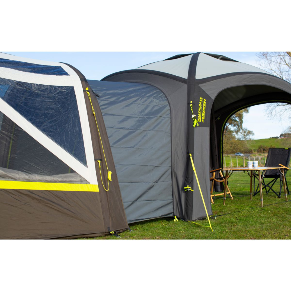 Upgrade your camping setup by connecting the Roadiebase Air Shelter to your Zempire Pro TL V2 Air Tent. This connection transforms your Pro Tent into a fully inflatable canvas shelter, giving you the ultimate in comfort and protection while outdoors.