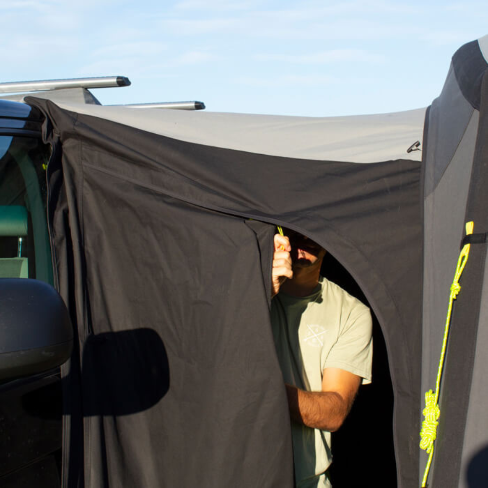 Features 2 x side access doors for convenient access to your campervan or shelter and Zempire's strongest canvas materials. An included wall zips on easily to the Roadiebase to give added privacy and protection. Matches perfectly with the Roadiebase to take your campervan trips to the next level!