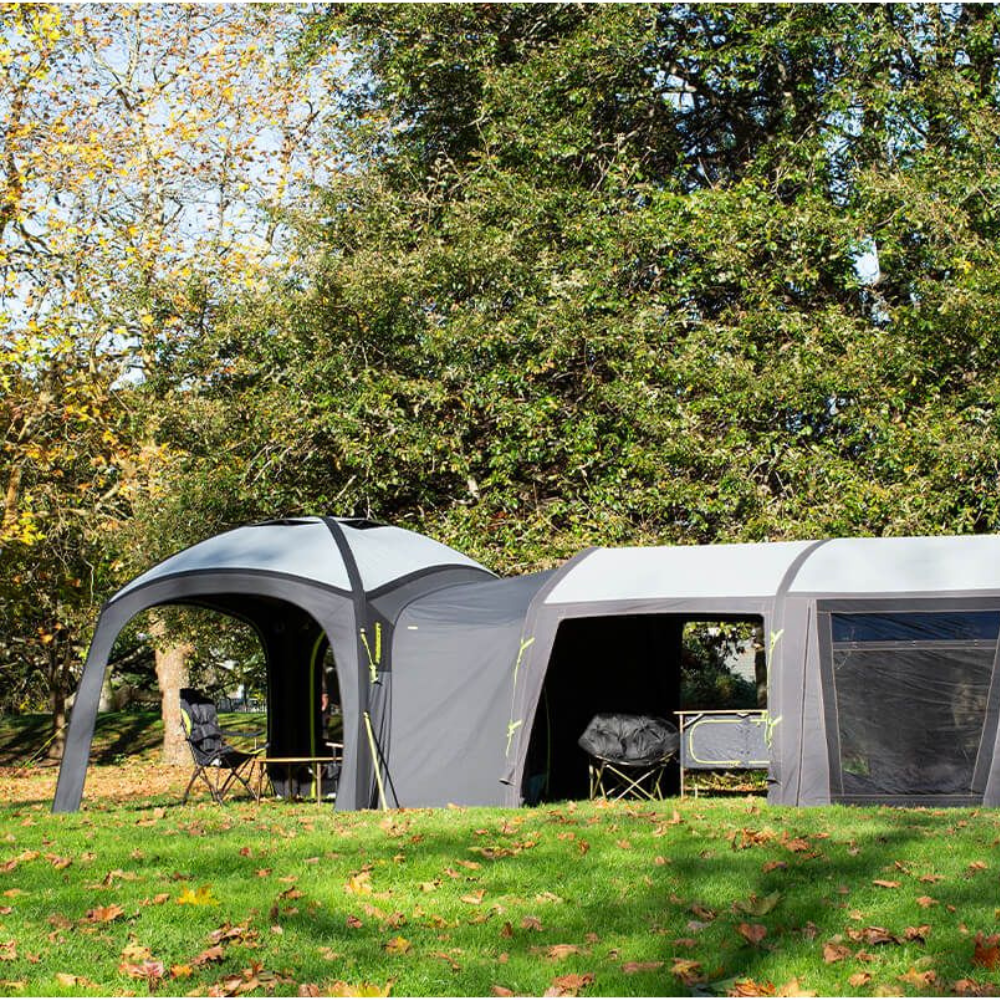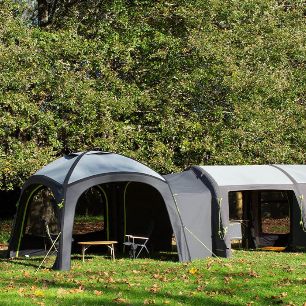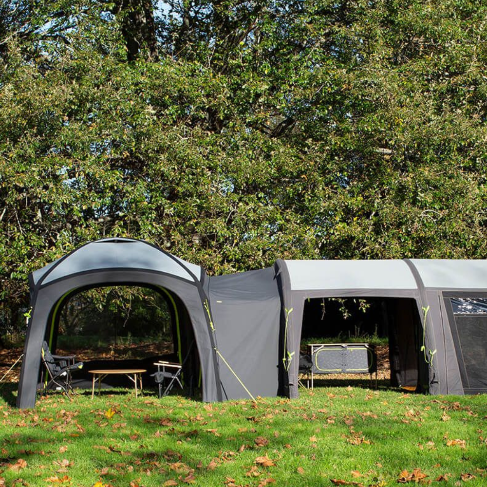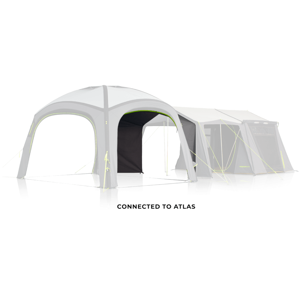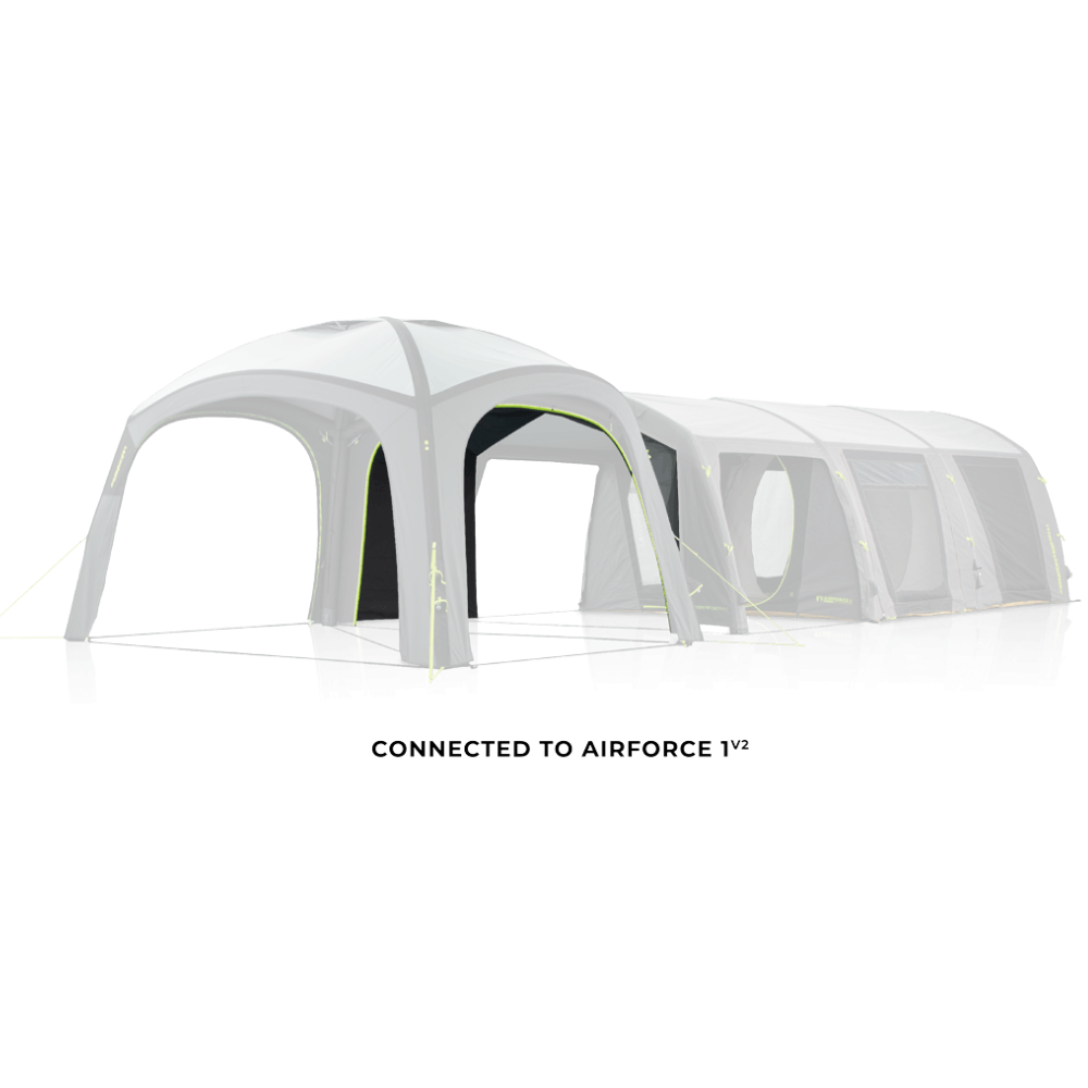 Upgrades your Airforce 1 V2, Atlas, Titan or select legacy model canvas tent setup by connecting the Roadiebase Air Shelter to the front awning, creating a large protected space. Made from our strongest canvas materials, the link simply attaches onto the front of the canvas tent's awning with velcro to provide a protected connection between tent and shelter.