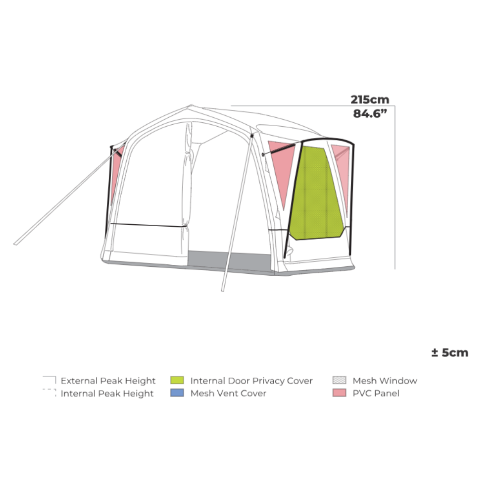 The Shapeshifter 4 Living module features oversized air tubes for quick inflation and sturdy wind resistance for ultimate convenience, strength, and reliability. The near-vertical walls and large doors allow even the tallest of campers to walk around freely.