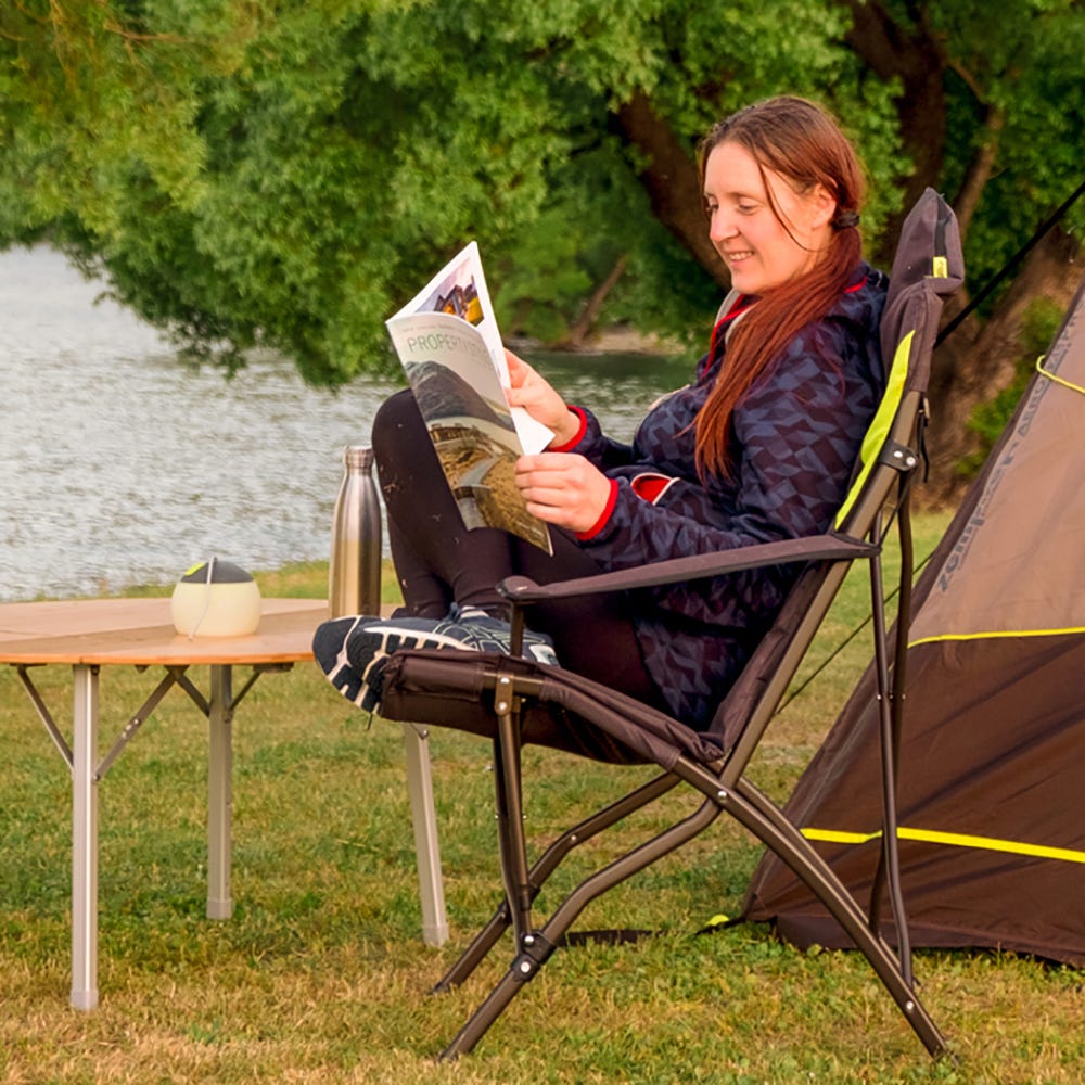 The Stargazer is a luxurious camp chair. A fully padded extra high back, supports you to the point where it is hard to keep your eyes open.