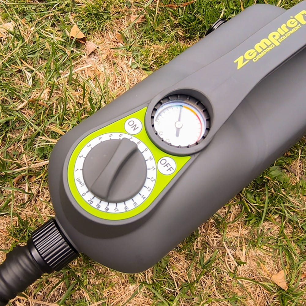 The Zempire SuperCell Pump is the quickest and easiest way to inflate any Zempire inflatable tent. Easy to use simply attach to any inflation point and it will inflate to the previously selected PSI requirement. With an automatic switch to high-pressure mode at 1PSI, this will ensure that there is no chance that overinflation will occur. The Zempire SuperCell Pump is capable of inflating Zempire largest tent, the Delta Force in less than 10 minutes.