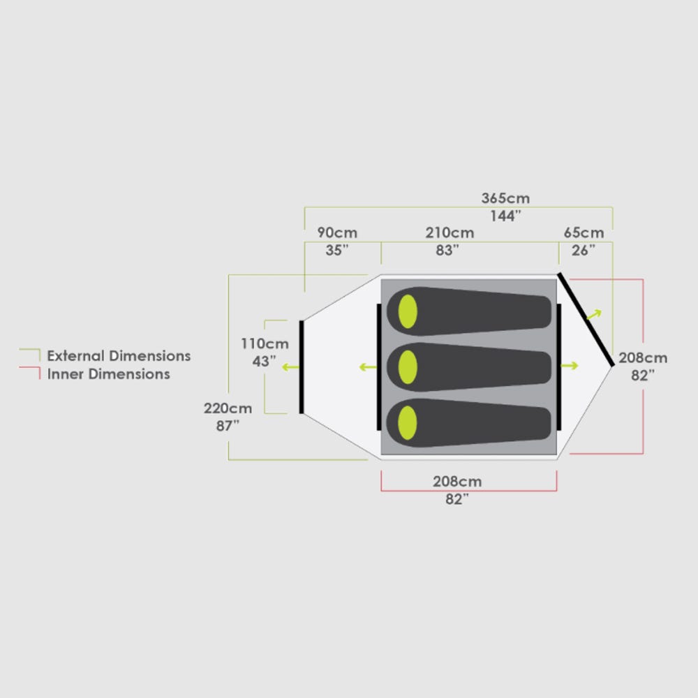 Complete with two vestibules (front and rear) and a spacious interior, sleeping 3 people in a lightweight tent is a breeze. With an internal height of up to 120cm, dual roof vents and an incredibly tough flysheet, Zempire has covered all bases with the Trilogy model hiking tent. A quick look at the features will prove this!